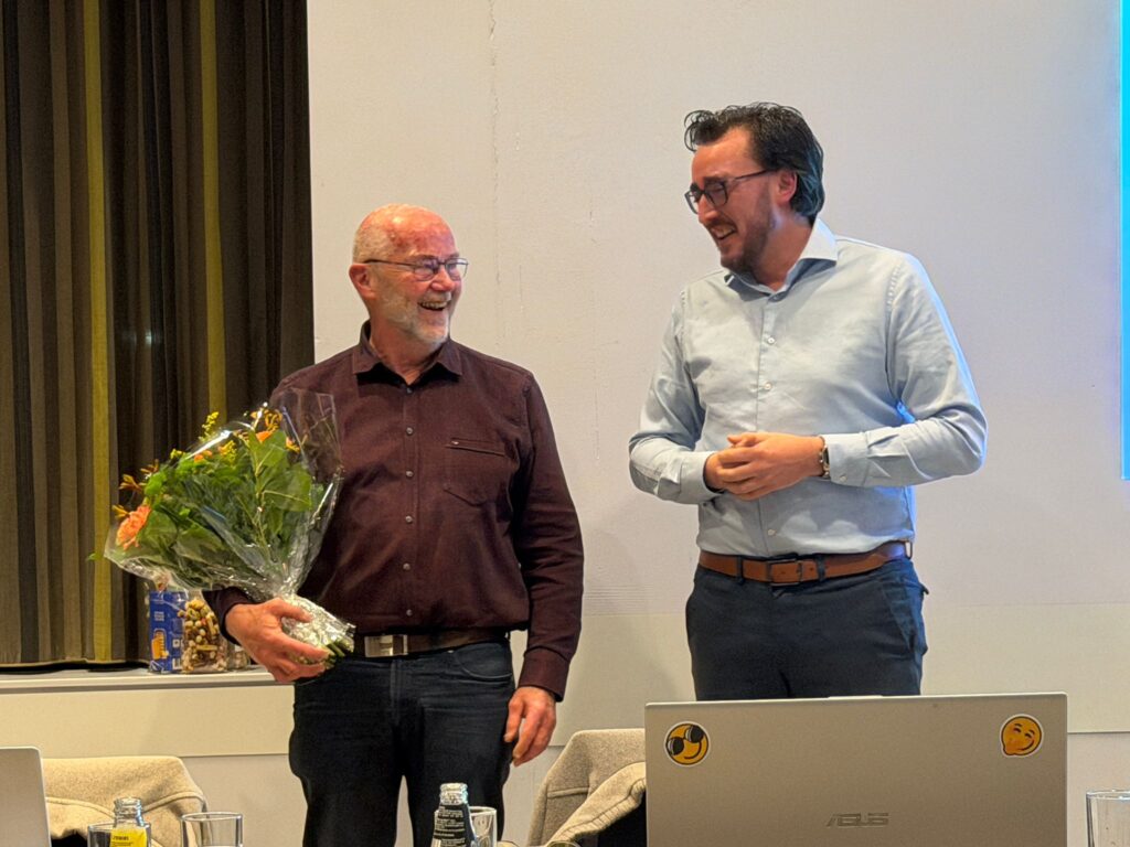 Naast afscheid was er ook ruimte voor een bijzonder moment van waardering. Ton Peeters werd unaniem benoemd tot erelid van Harmonie KNA. Als dwarsfluitist is hij een zeer betrokken en actief lid van de vereniging. Ton werkt het liefst op de achtergrond, waar hij zich al jarenlang inzet voor allerlei praktische zaken — waaronder het oud papier, waar hij zich al vele jaren voor inzet.